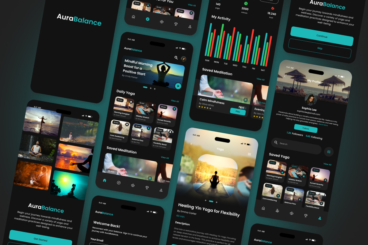 TranquilPath combines yoga, meditation, and mindfulness in one platform. Designed with soft colors and intuitive icons, TranquilPath provides a serene user experience, allowing users to follow guided meditation sessions, yoga classes, and breathing exercises. Perfect for anyone looking to integrate calm and mindfulness into their daily routine, TranquilPath offers an inspiring, user-friendly design.