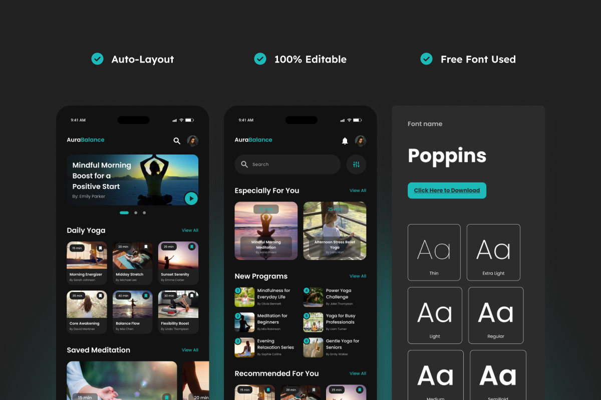 TranquilPath - Yoga & Meditation Mobile App UI Element