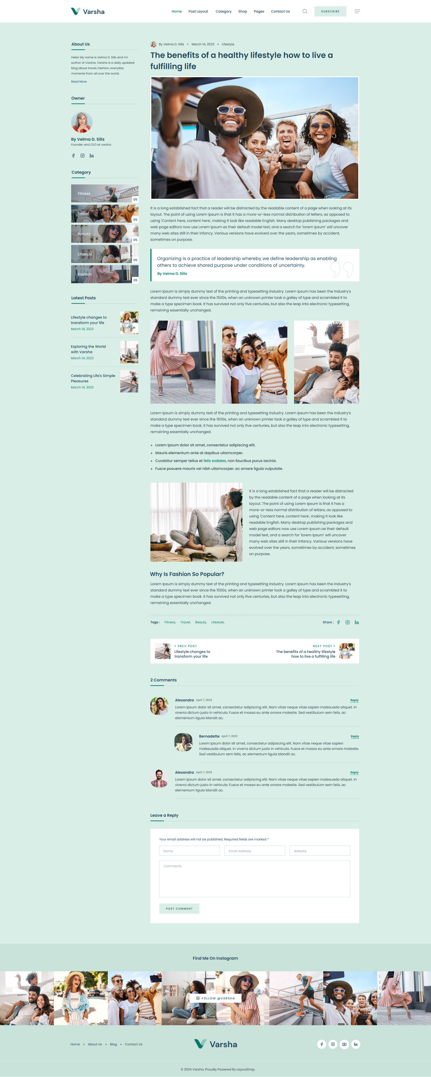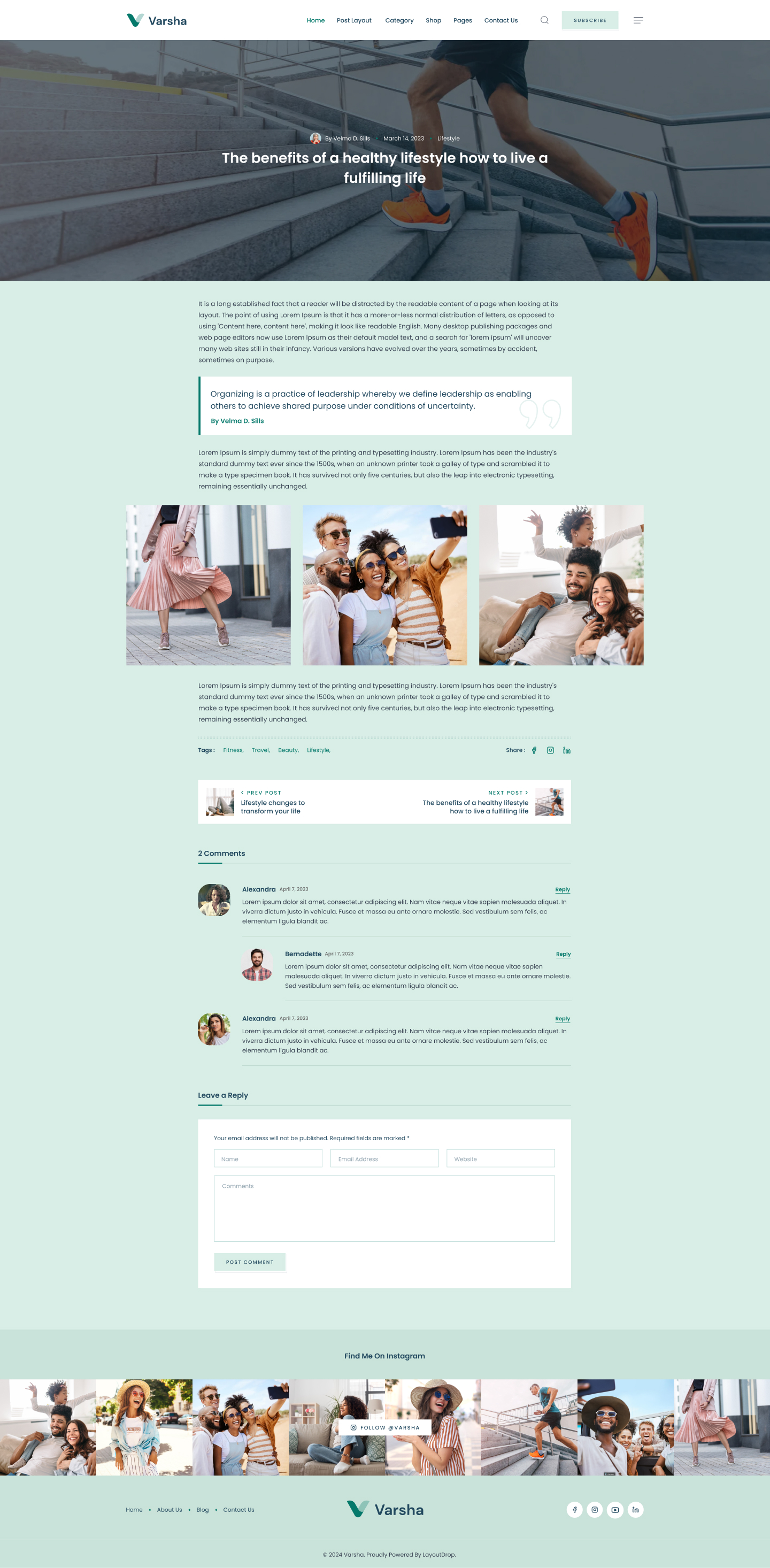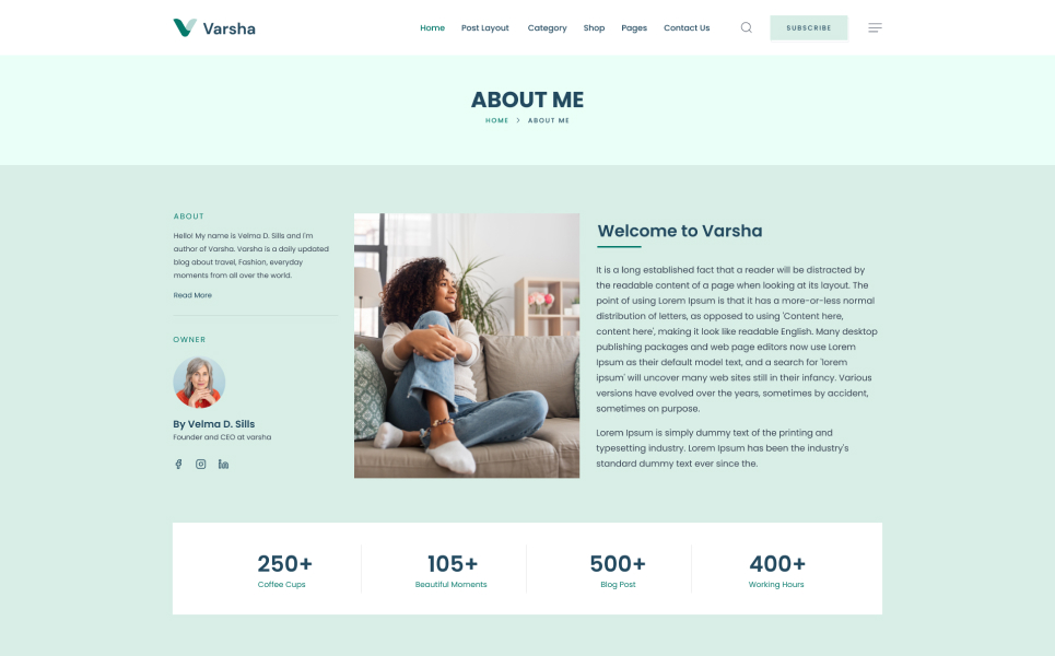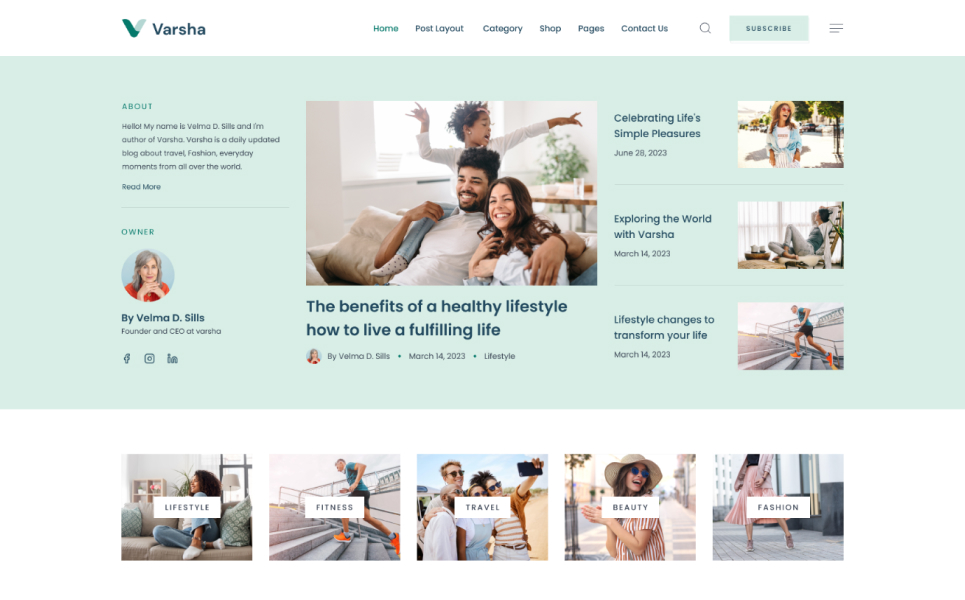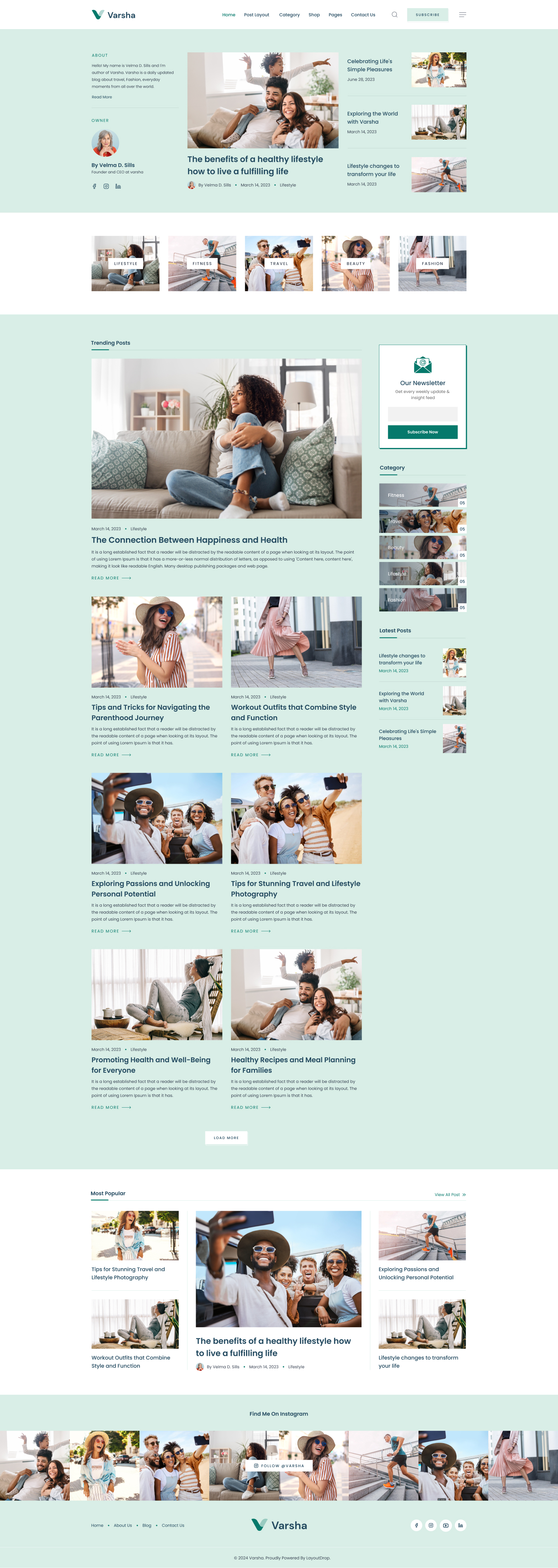 Varsha - Lifestyle Personal Blog Figma Template UI Element