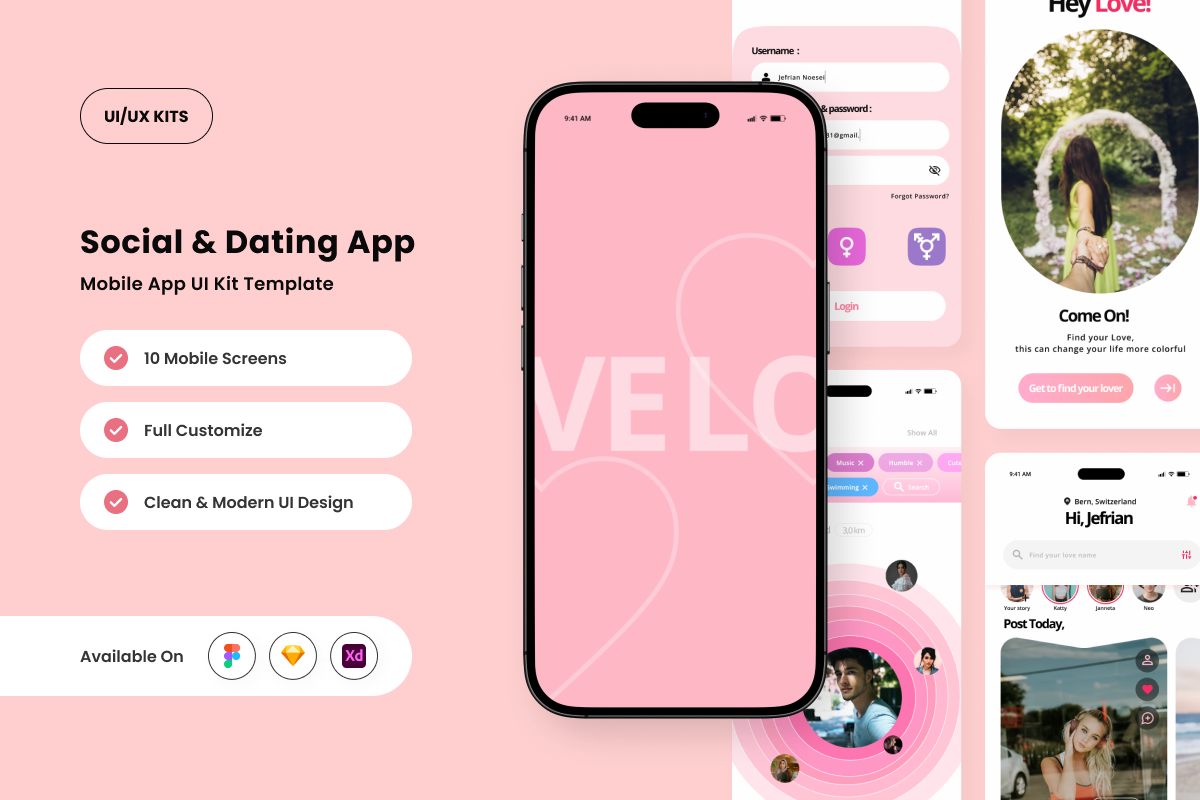 VeLov - Chic Social and Dating App UI Kit UI Element
