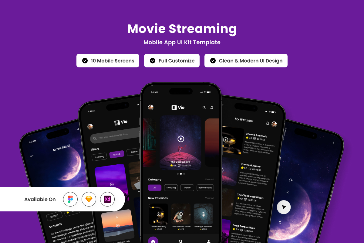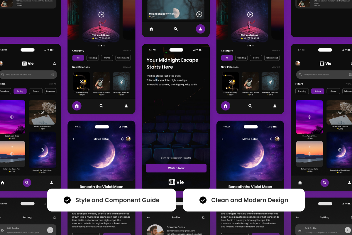 Vie – Movie Streaming Mobile App Design Template UI Element