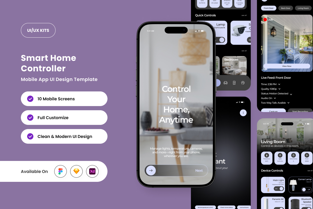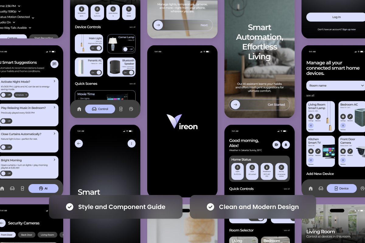Vireon brings clarity and high-end feel to smart control apps. Designed with glowing neon accents and seamless toggles, it’s made for bold, modern UI designs that prioritize fast interaction.