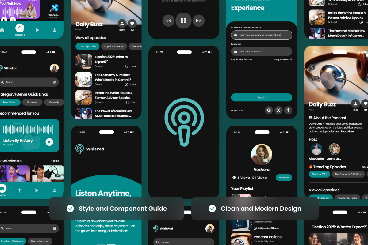 WhisPod - Podcast Streaming App UI Kit UI Element
