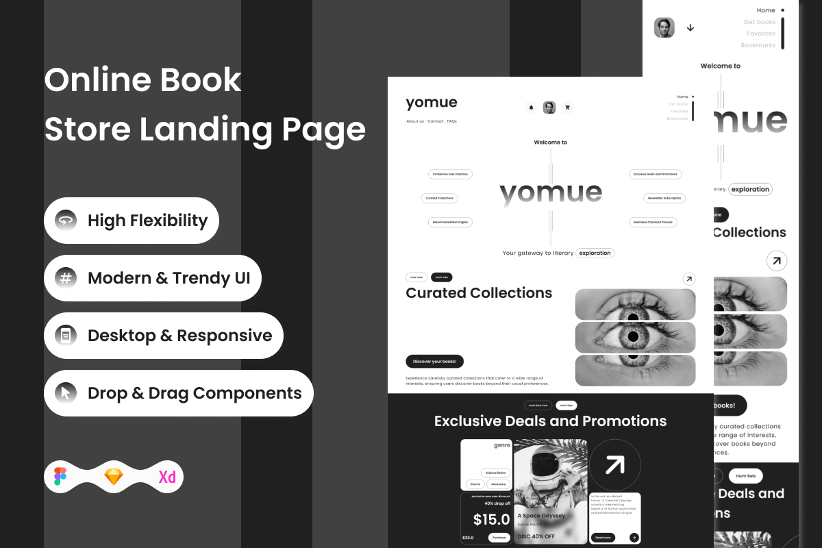 Welcome to Yomue - Online Book Store Landing Page V1, your haven for literary discovery and delight. Step into a world of endless imagination and literary wonders, where every book holds the promise of adventure and enlightenment. With Yomue V1, explore a curated collection of books, browse through genres, and embark on a journey of literary exploration unlike any other. Let Yomue V1 be your guide as you unravel the mysteries and wonders of the written word.