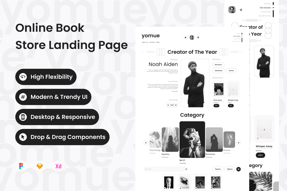 Immerse yourself in the world of literature with Yomue - Online Book Store Landing Page V2, where every scroll unveils a new chapter of possibility. Discover a curated selection of books that cater to every taste and interest, meticulously presented for your browsing pleasure. With Yomue V2, embrace the joy of reading in its purest form, and let your imagination soar to new heights with each turn of the page. Experience the magic of storytelling with Yomue V2 – your gateway to literary excellence.