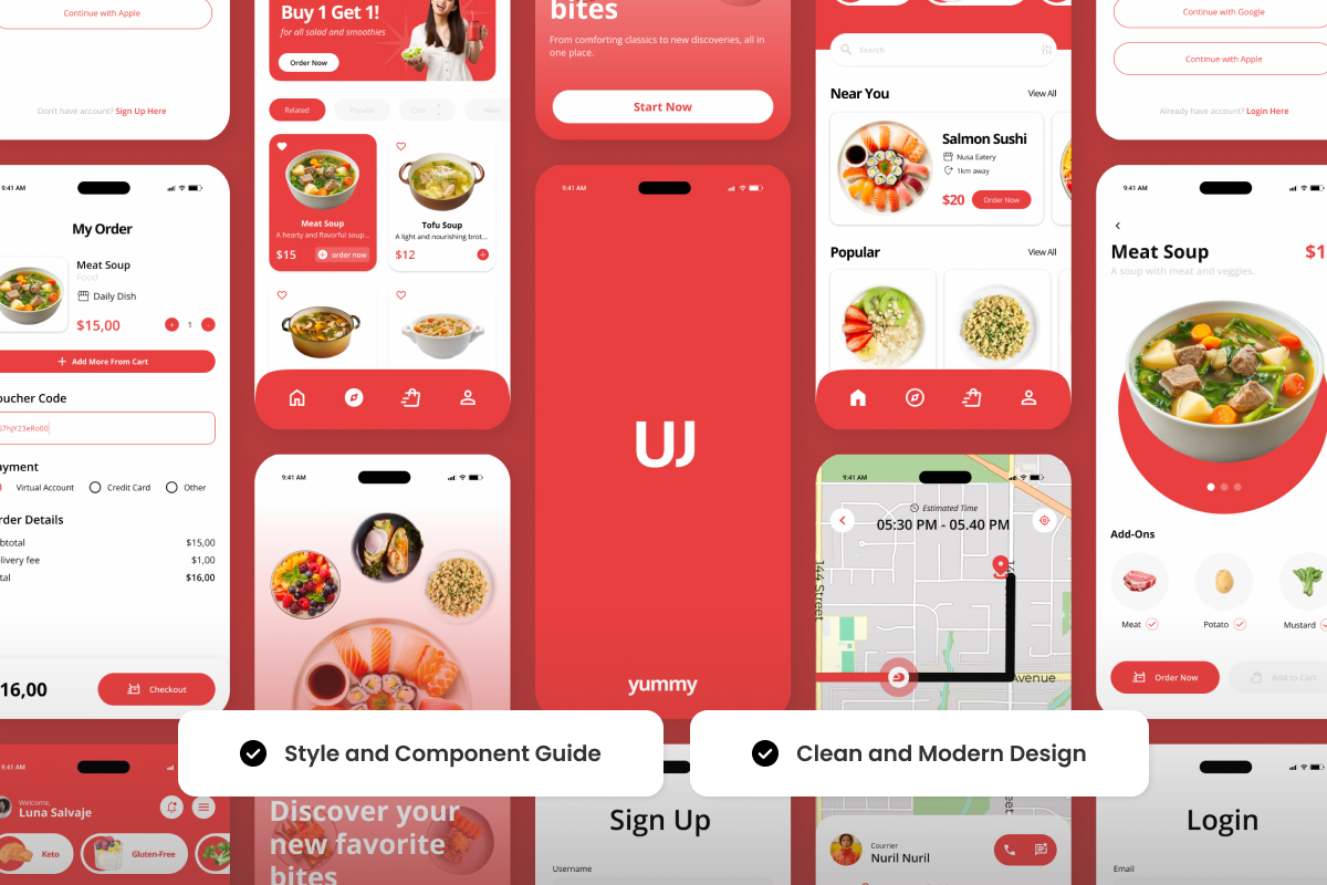 Make healthy eating look delicious with Yummy. This modern and aesthetic mobile UI kit is built for organic food apps that value both function and visual appeal. Perfect for wellness-focused startups, meal plan platforms, and eco-conscious food delivery services.**Highlights:**