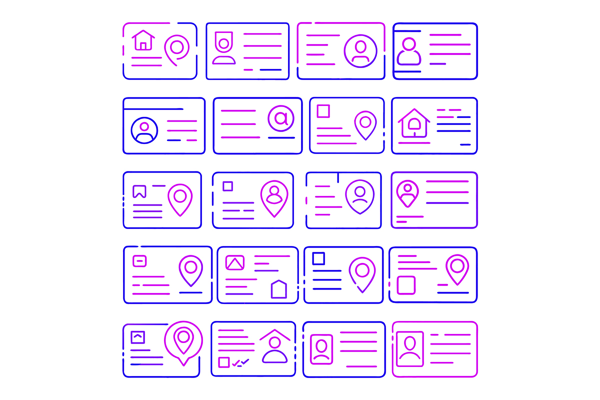 Address-card icon with gradient outline style bundle Vector Graphic