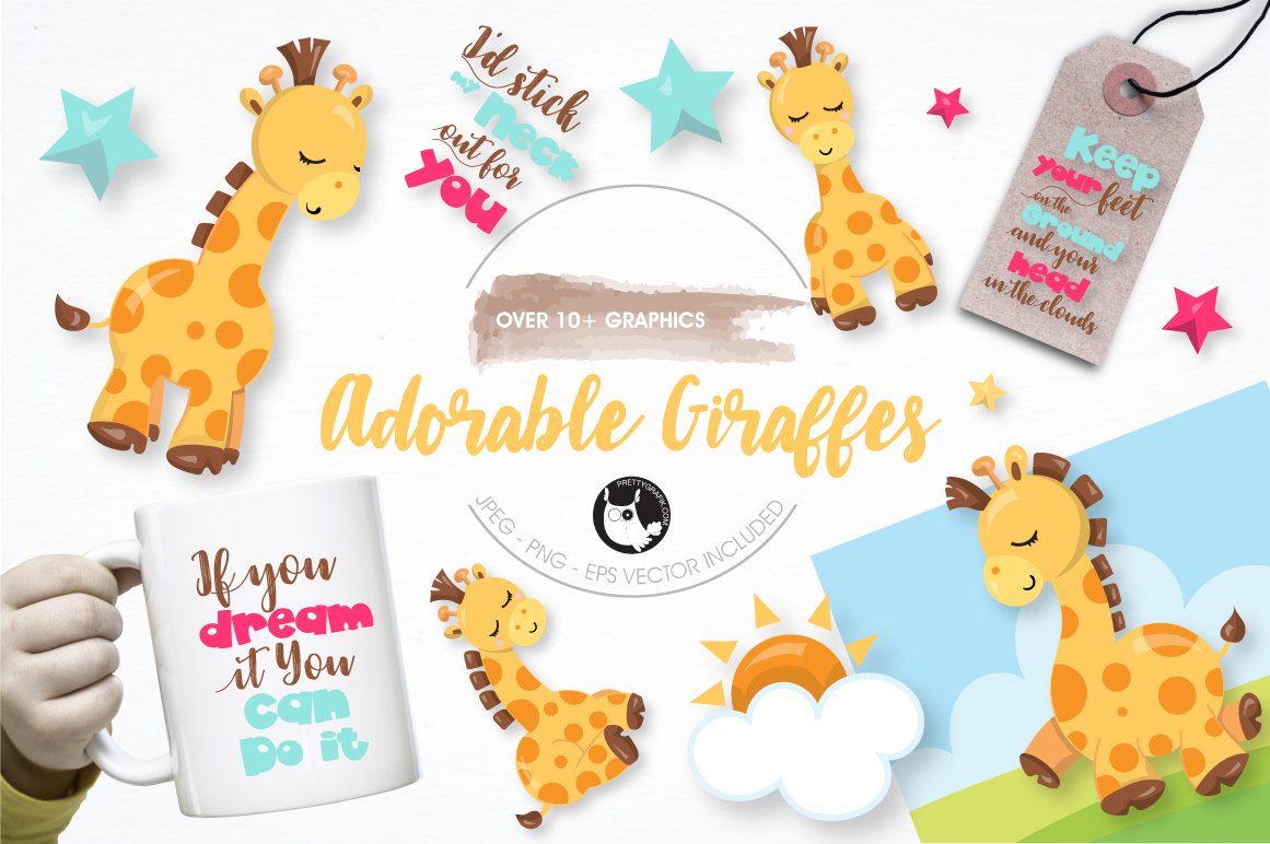 Adorable giraffe features over 30 design elements and is perfect for invitations, greeting cards, product design, tags, labels and so much more.