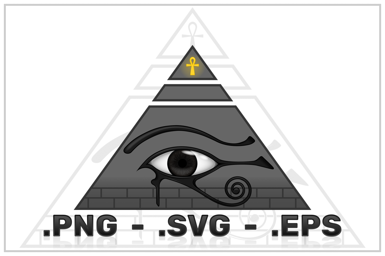 Vector design of Ancient Egypt Pyramid with the eye of horus, winged Egyptian pyramid with ansed cross symbol. Includes grayscale version, lines and silhouette.