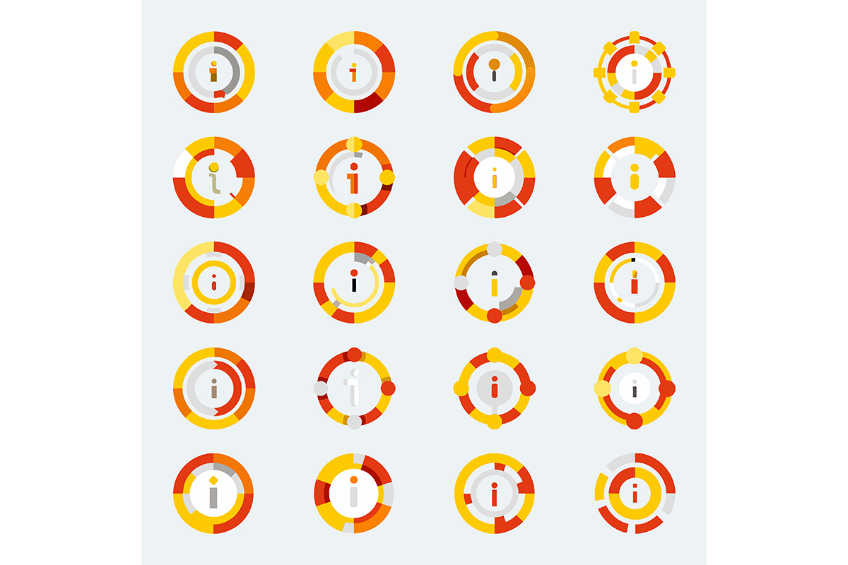 Beautiful Circle info icon with colored shape style Bundle Vector Graphic