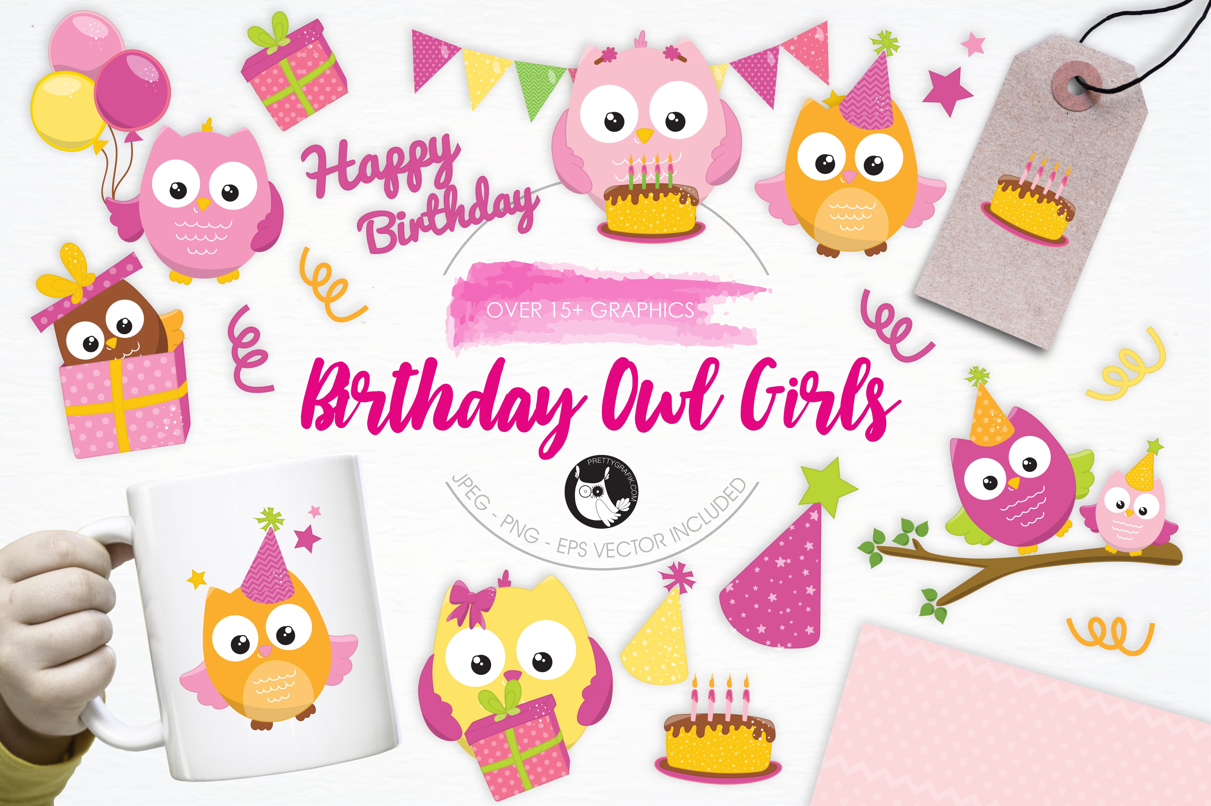 Birthday Owls Girls illustrations - Vector Image Vector Graphic