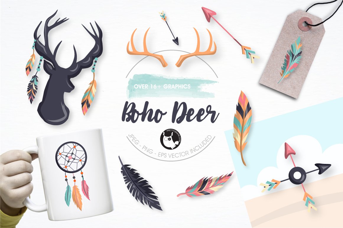 Boho deer features over 30 design elements and is perfect for invitations, greeting cards, product design, tags, labels and so much more.