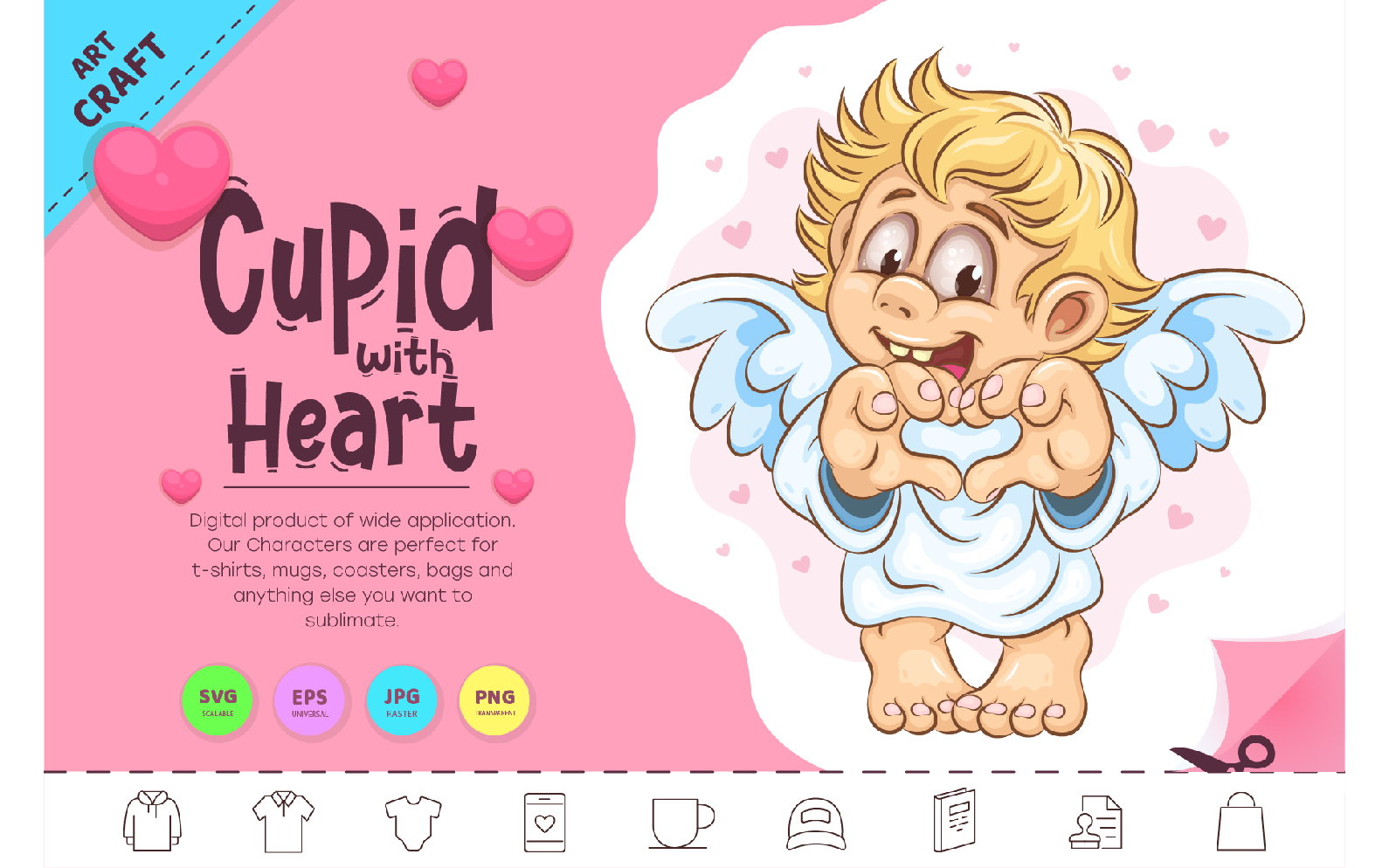 Cartoon Cupid with Heart. Clipart Vector Graphic