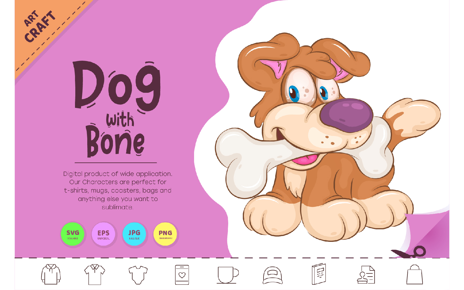 Cartoon Dog with Bone. Clipart. Vector Graphic