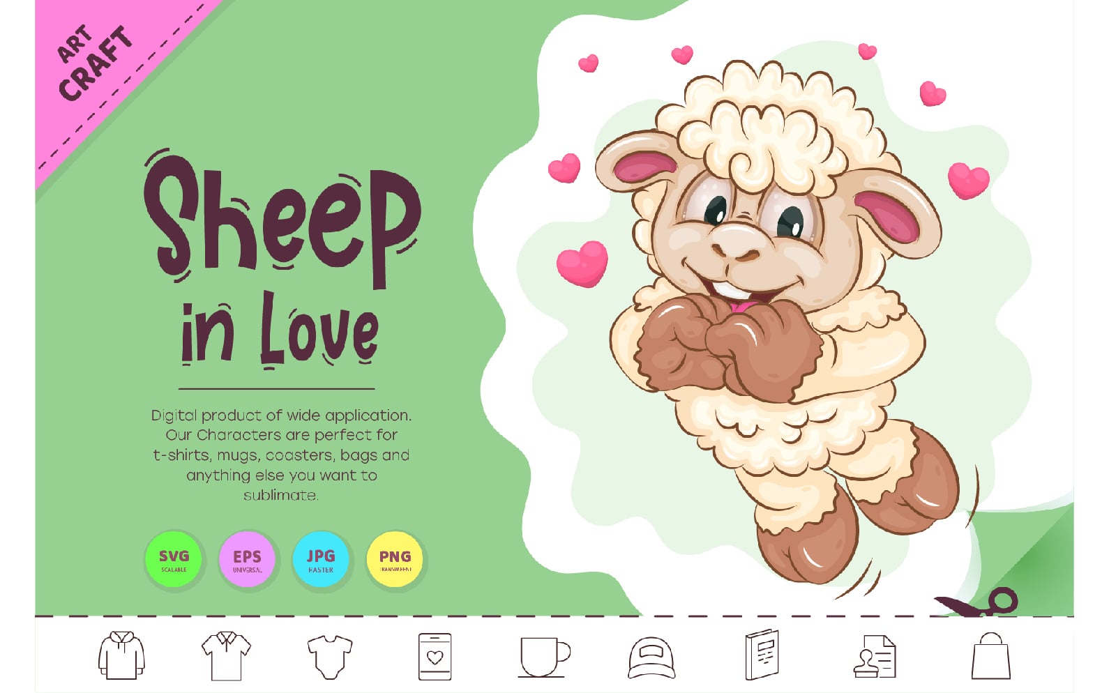 Cartoon Sheep in Love. Clipart. Vector Graphic