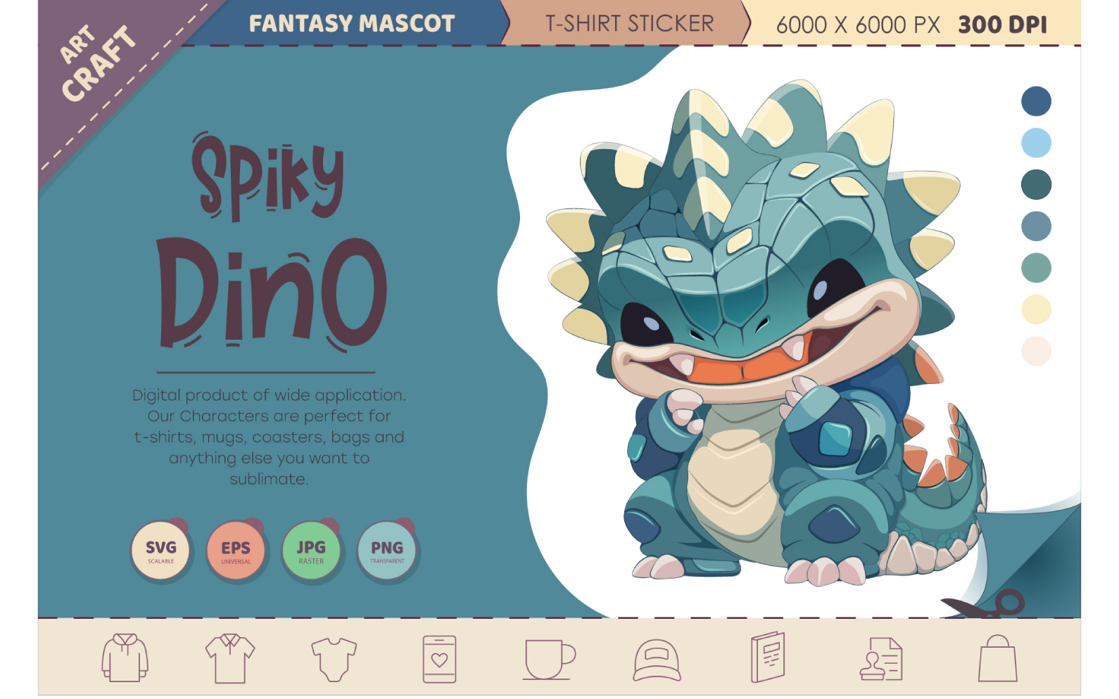 Cartoon spiky dino. T-Shirt, PNG, SVG. Vector Graphic