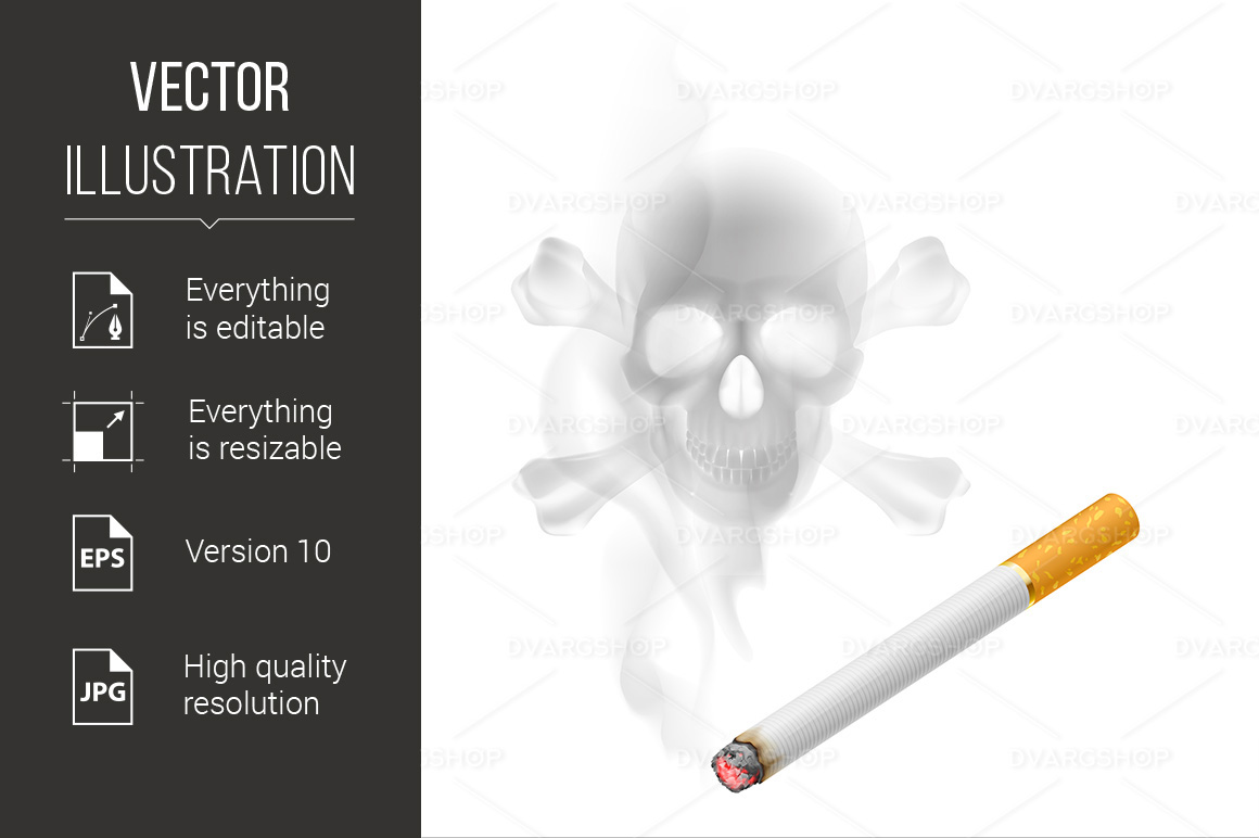 Cigarette and Skull shaped smoke - Vector Image Vector Graphic