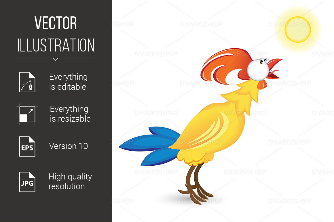 Cock and the Sun - Vector Image Vector Graphic
