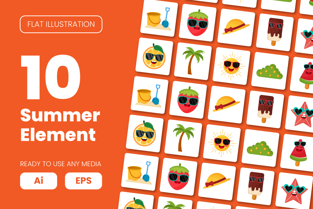 Collection of Summer Element in Flat Illustration Vector Graphic