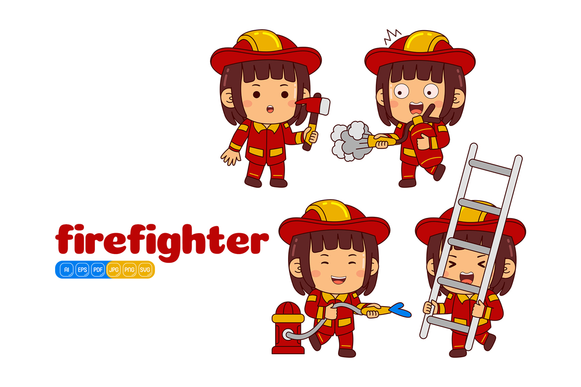 Cute Firefighter Girl Vector Pack #01 Vector Graphic