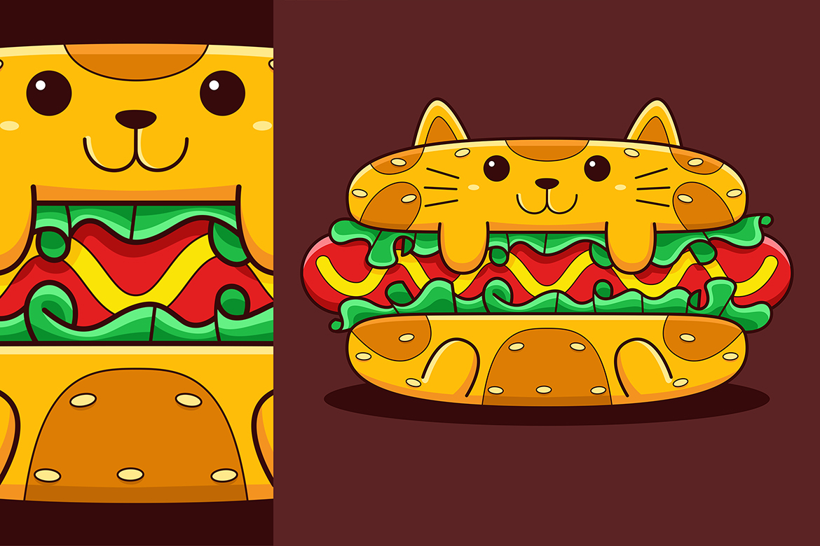 Cute Hot Dog Cat Vector Cartoon Style Vector Graphic