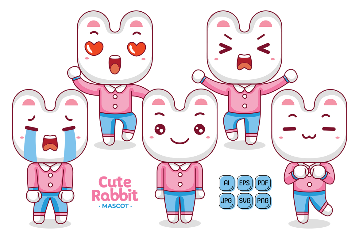 Cute Rabbit Mascot Character Vector Illustration Vector Graphic