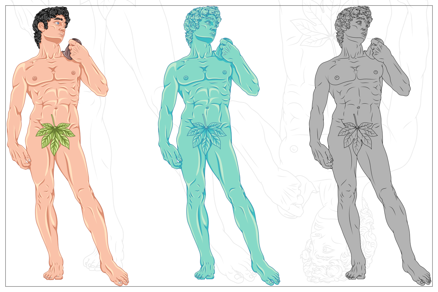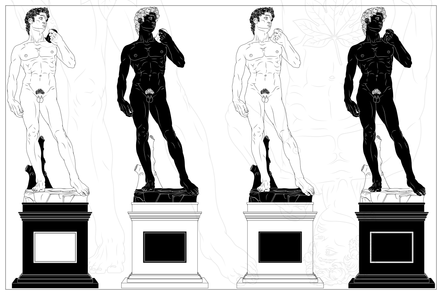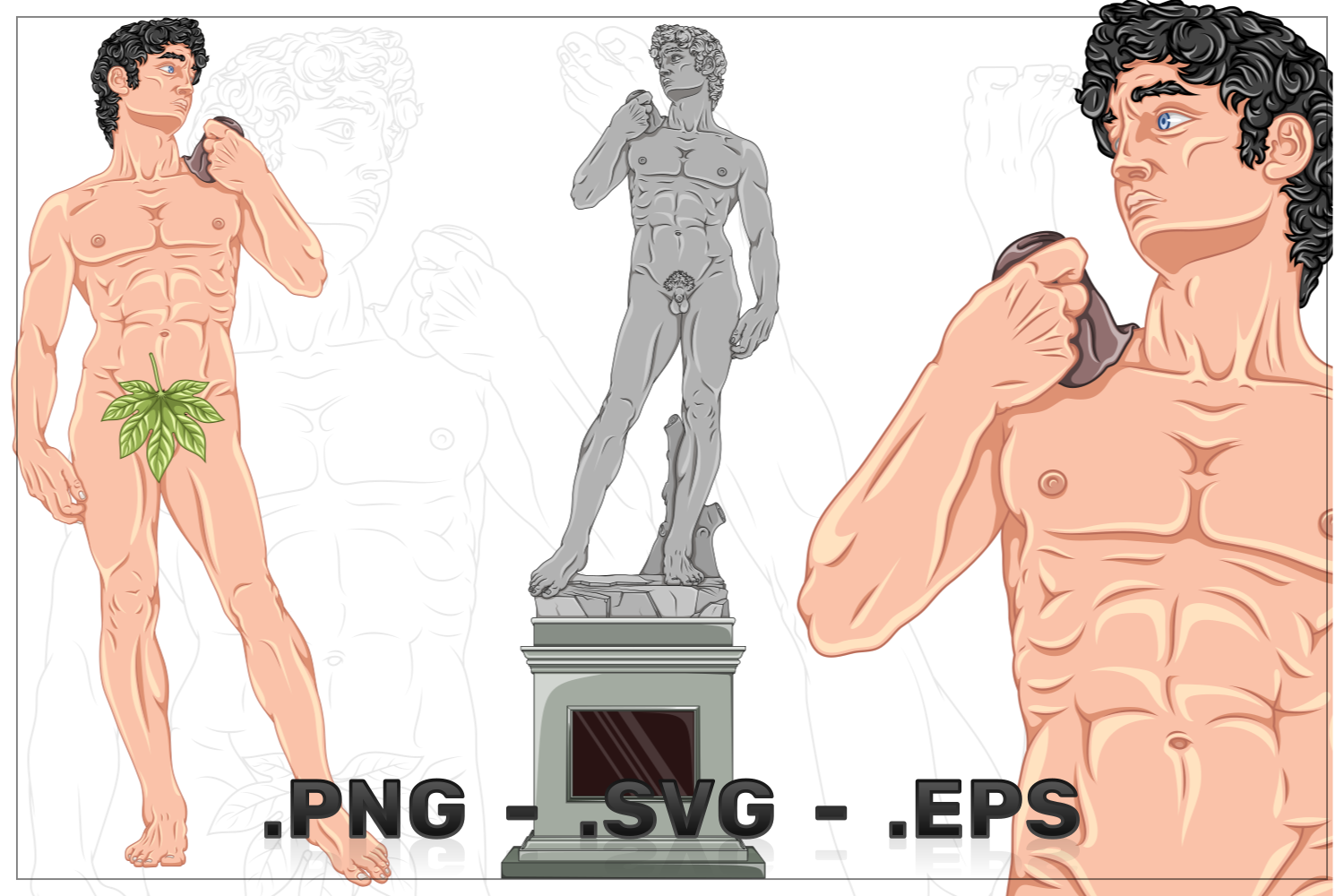 Vector design of David with a Sling Biblical character, David statue Michelangelo renaissance art.