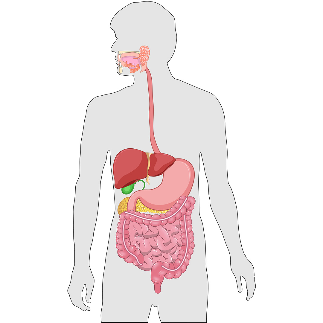 - A muscular organ that further breaks down food using stomach acids and enzymes, turning it into a semi-liquid mixture called chyme.