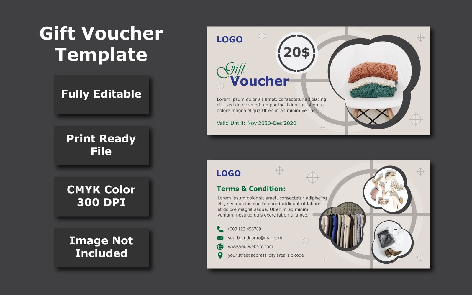 This is a Fashion/Clothing Store Gift Voucher Template. This Template Download Contains a 300 DPI, Print-Ready, CMYK, AI Files.