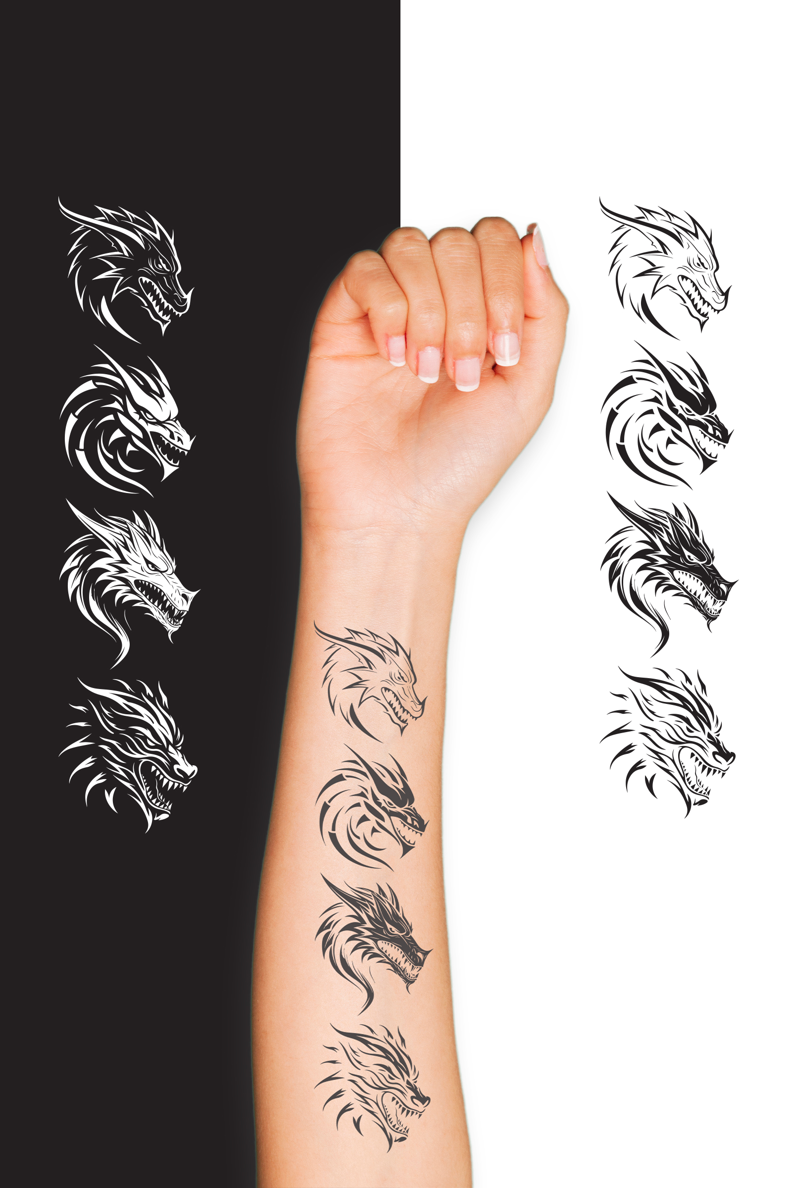 Fierce Tribal Dragon Head Tattoo Set - Vector Graphics Pack
