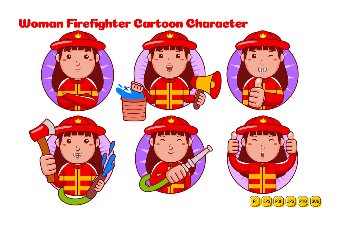 Firefighter Woman Cartoon Character Logo Pack Vector Graphic