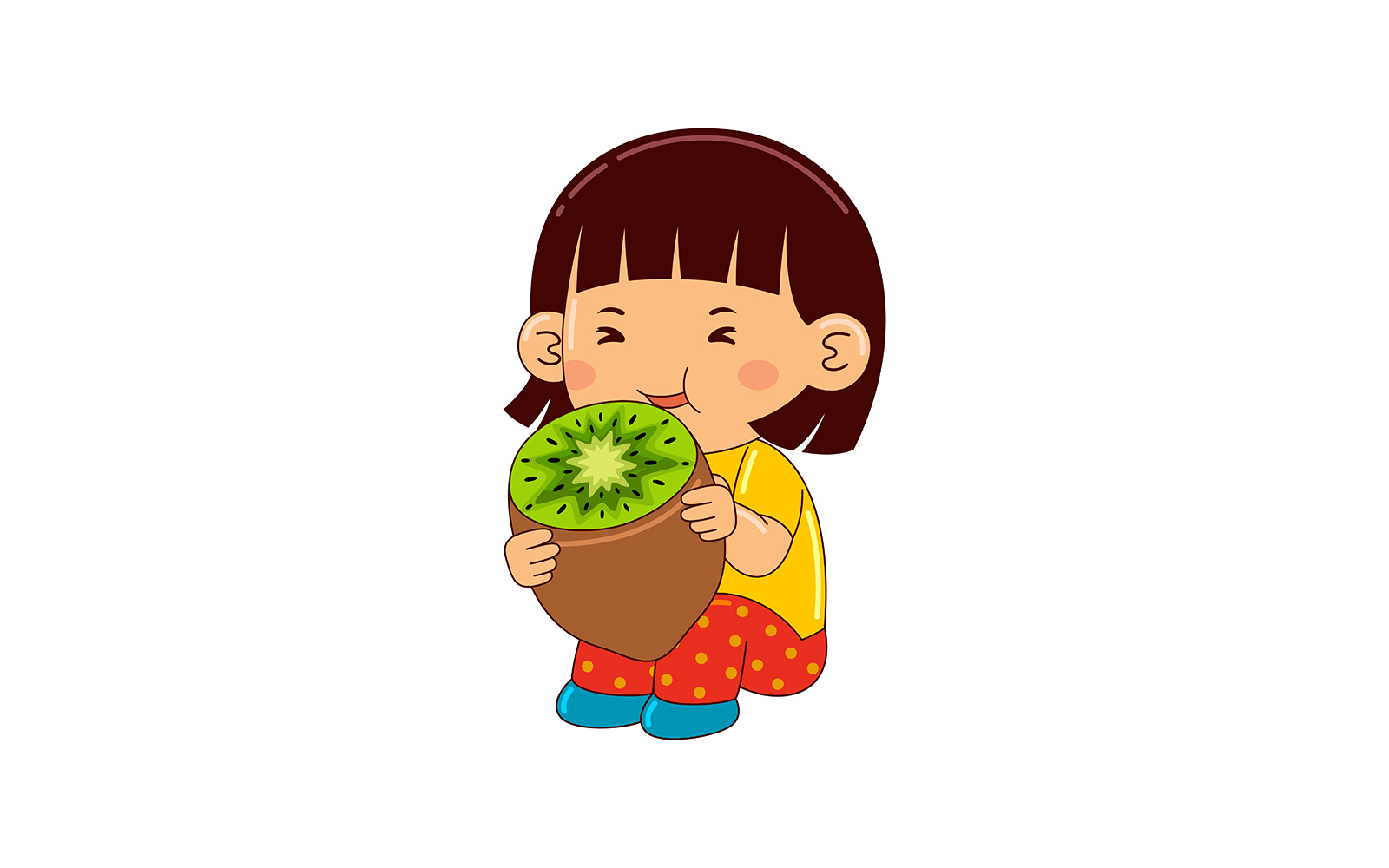 girl kids eating kiwi vector 2 Vector Graphic