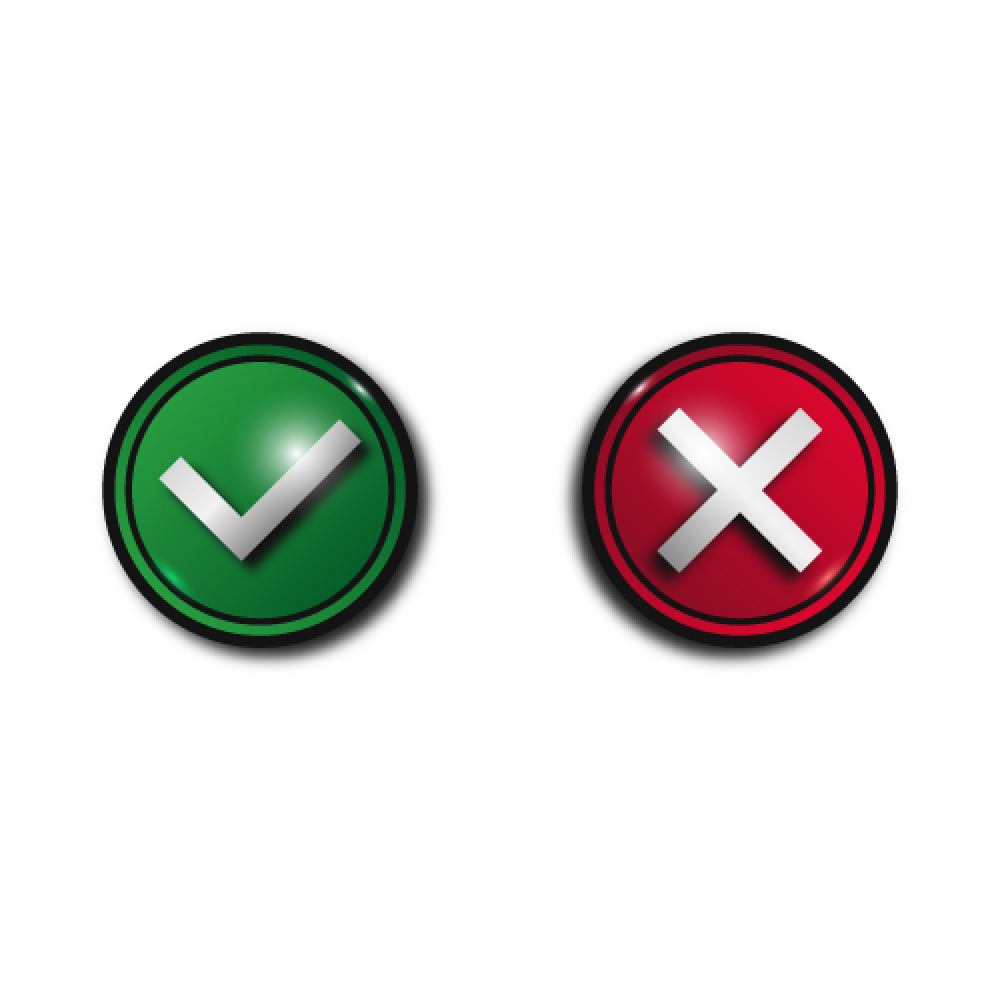 Green and red round buttons with a black frame, glares and Tick and Cross. A vector round buttons with a gradient, isolated on the white background. Can be used as a vector icon for the web, online games and apps. Available in JPG, AI and EPS formats.