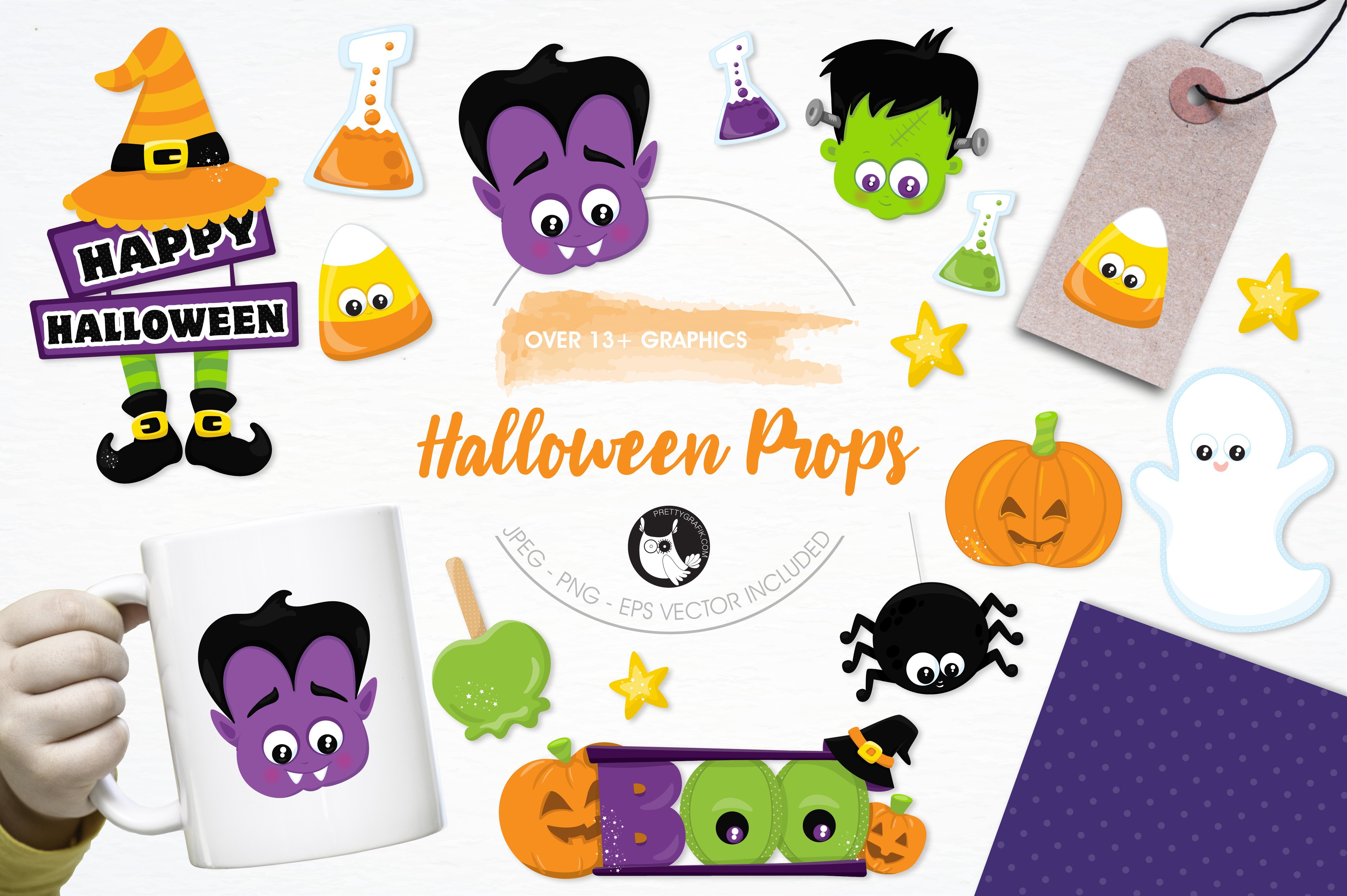 Halloween props pack features over 13 design elements and is perfect for invitations, greeting cards, product design, tags, labels and so much more.