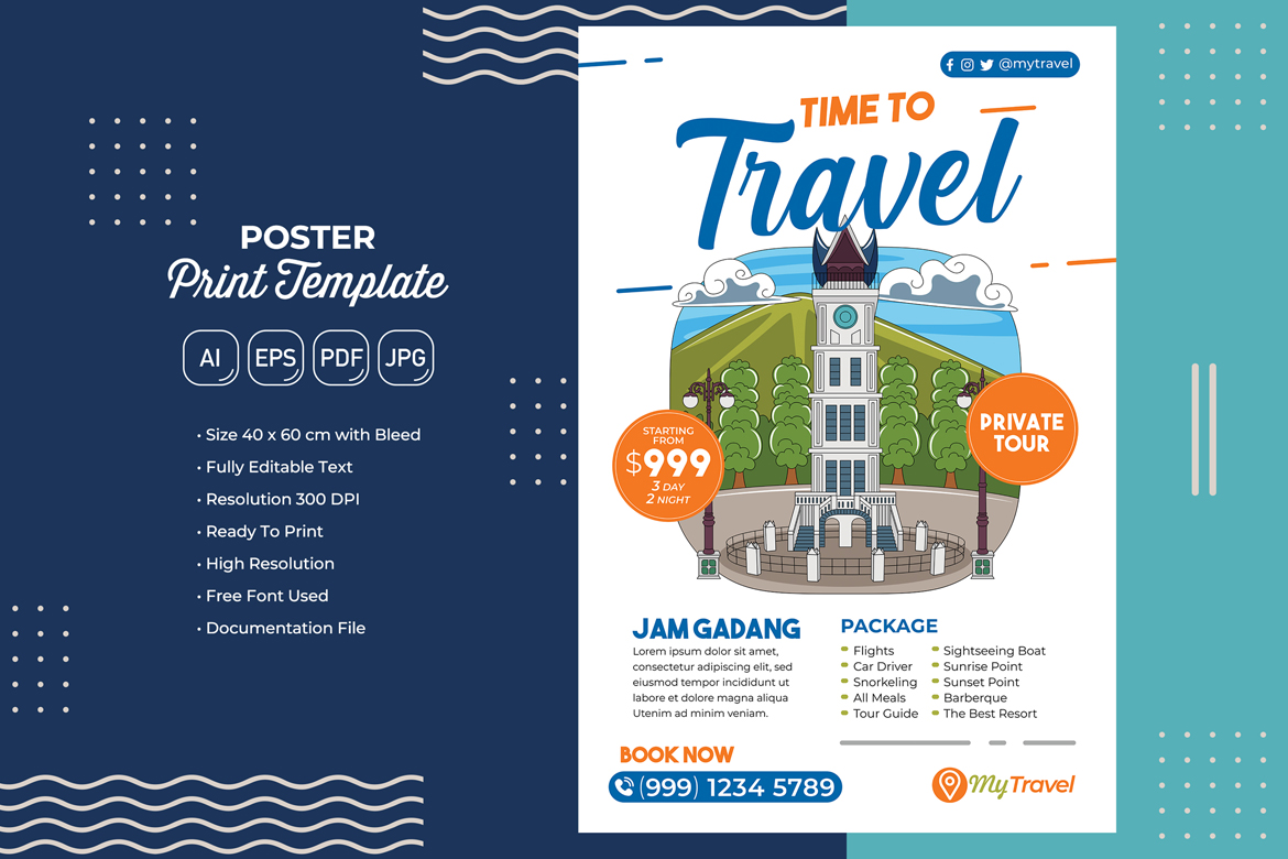 Holiday Travel Poster #16 Print Template Vector Graphic