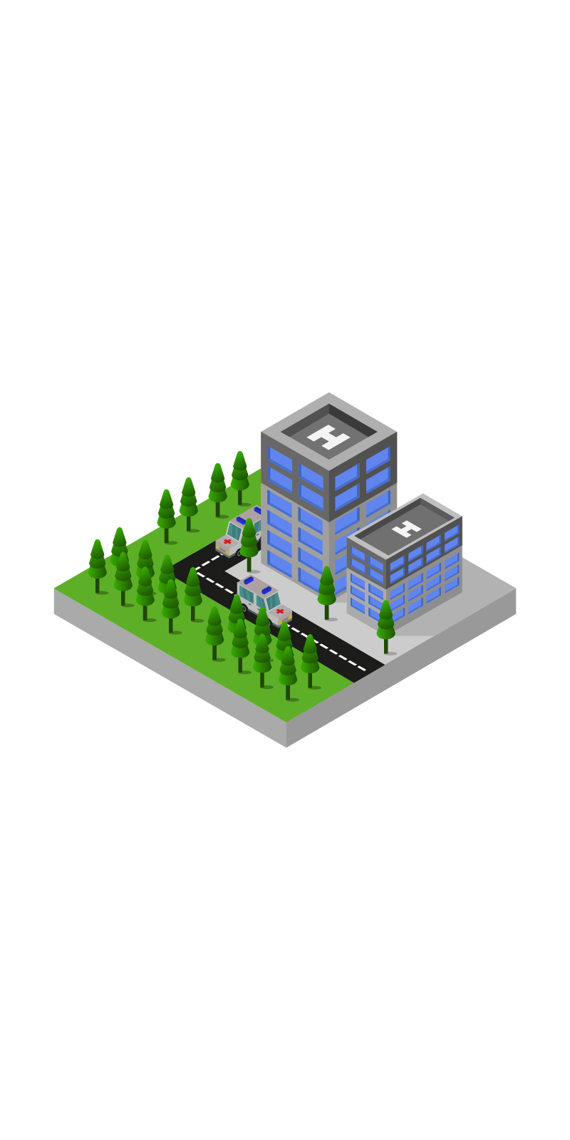 detailed and high quality isometric hospital, colored and illustrated in vector on a white background divided into the various vector paths and in EPS format available for Adobe Illustrator and usable for any support and graphic use ready for immediate use for your graphic projects