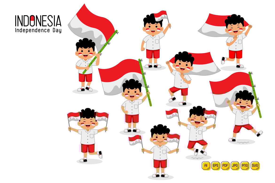 My new product Kids Celebrate Indonesia Independence Day Vector Illustration. You can create countless variations for infographics, social media, printing material, website, landing page, banner, and other Indonesia independence day illustration purpose.