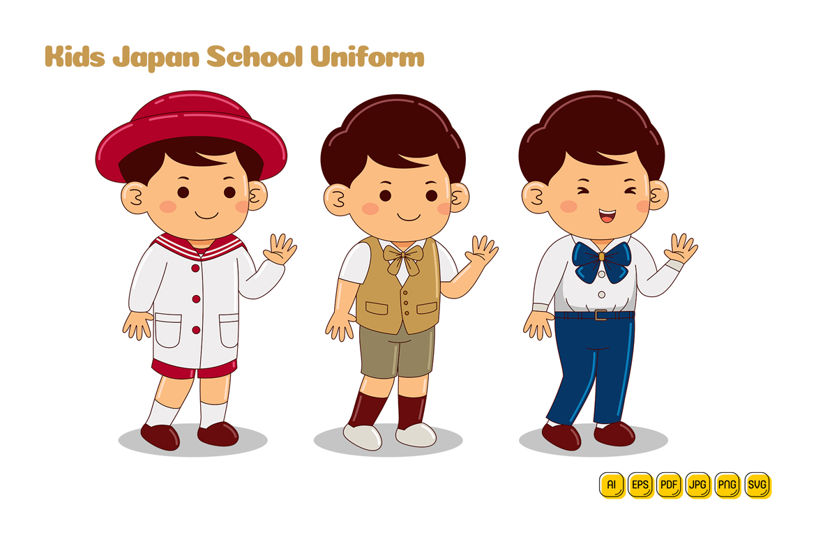 Kids Japan School Uniform Vector Pack #09 Vector Graphic