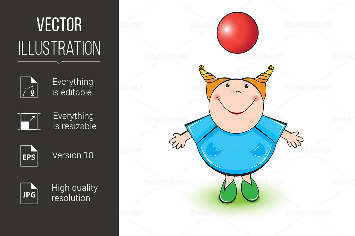 Little Girl and Red Ball - Vector Image Vector Graphic