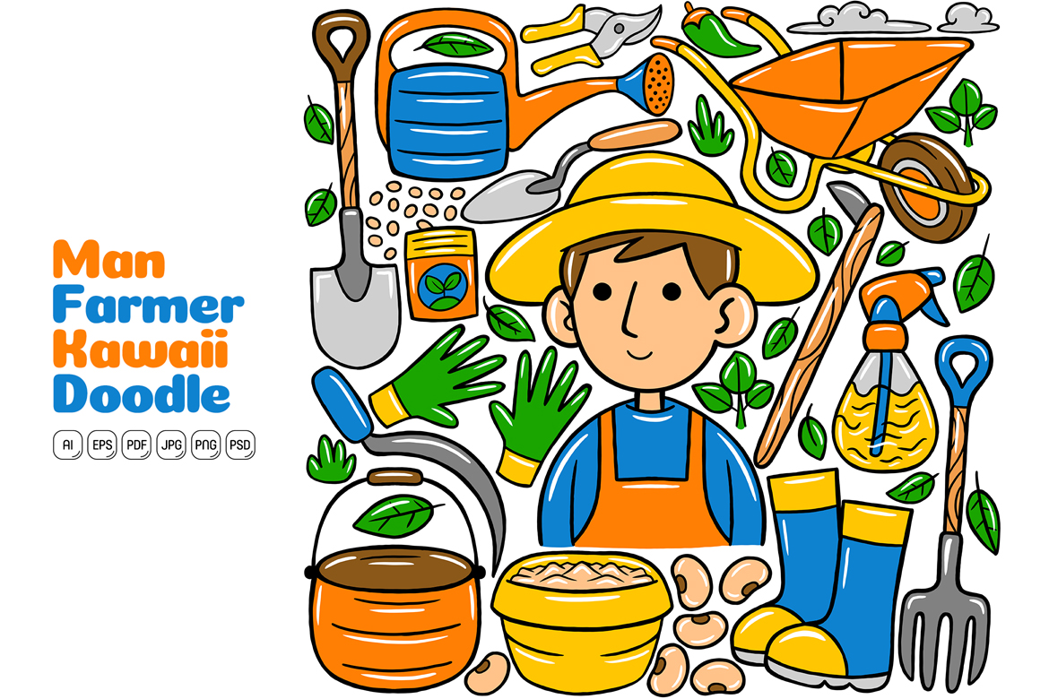 Man Farmer Kawaii Doodle Vector Illustration Vector Graphic