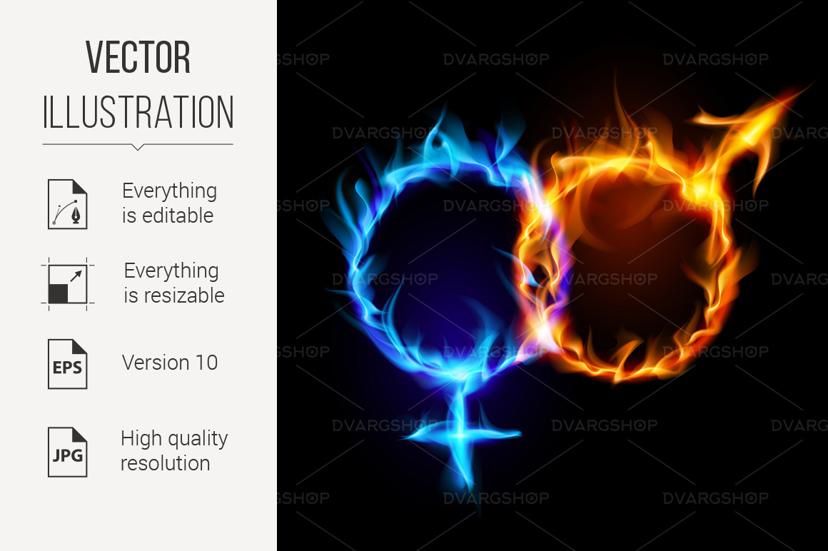 Mars and Venus Fire Symbols - Vector Image Vector Graphic