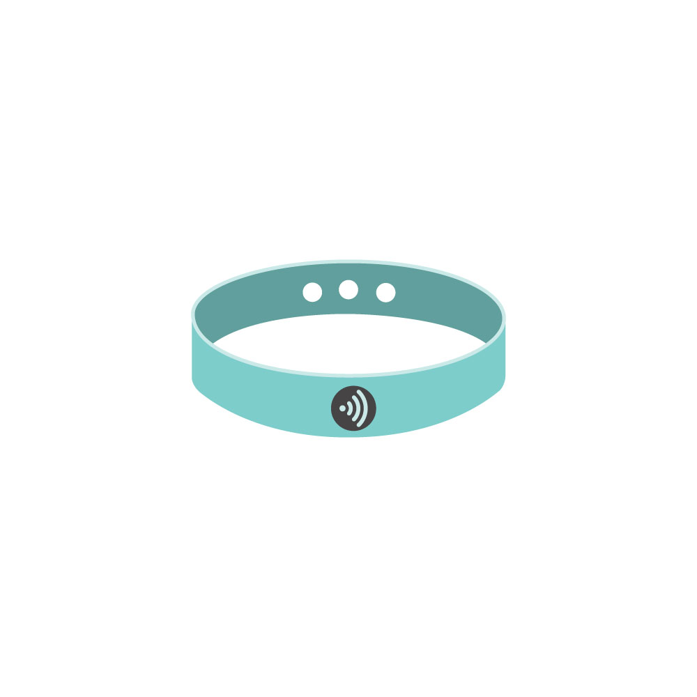 Download this modern NFC smart bracelet icon, designed in a flat vector style. Perfect for wearable technology apps, fitness tracker interfaces, mobile payment systems, and health monitoring dashboards.