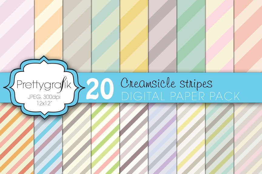 20 striped Creamsicle colored papers great for invitations, scrapbooking, cards and more.