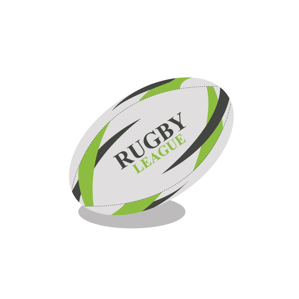 Professional Rugby Ball Vector Illustration - Green, White, and Grey with Shadow Vector Graphic