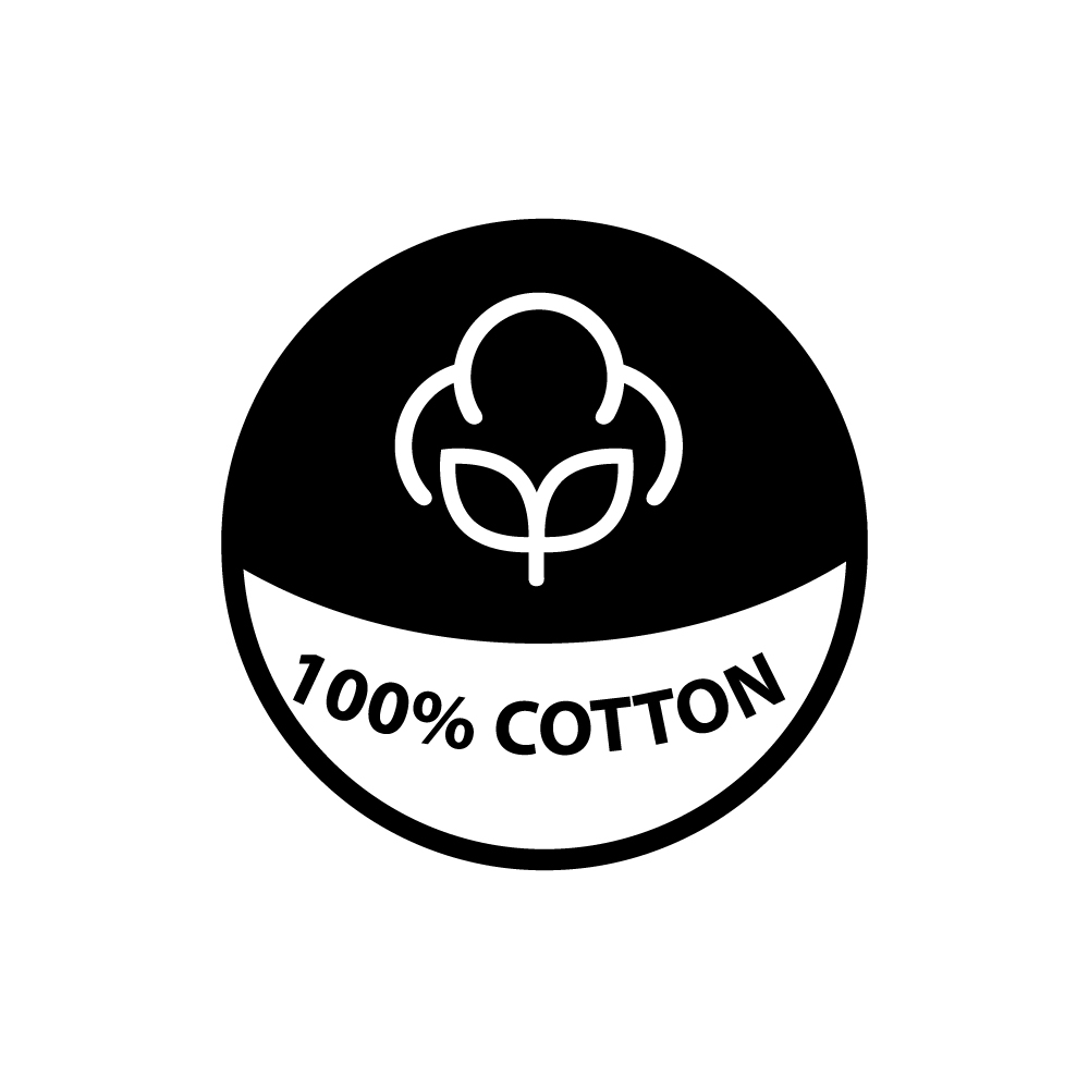 The 100% cotton symbol certifies garments made exclusively from natural cotton fibers, ensuring breathability, comfort, and eco-friendliness.