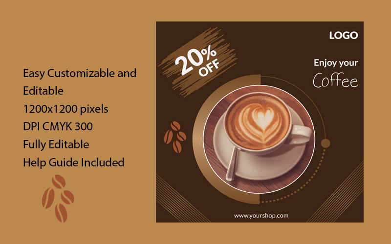 This is a sale banner for coffee shop. This Template Download Contains a 72 DPI, RGB, AI File.