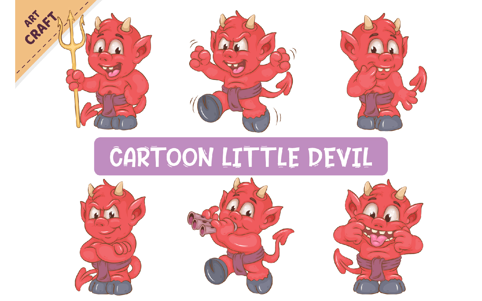 Bundle of cute cartoon Little Devil, 6 pieces in total. Unique design, Halloween mascot.