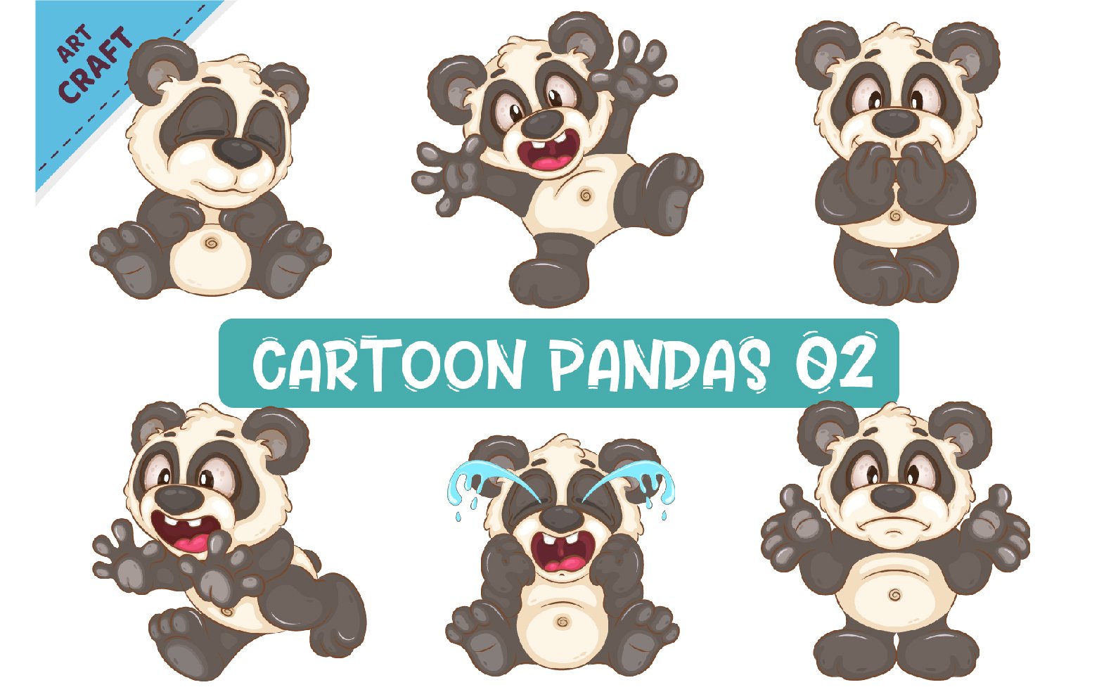 Set of Cartoon Pandas 02. Animal Art. Vector Graphic