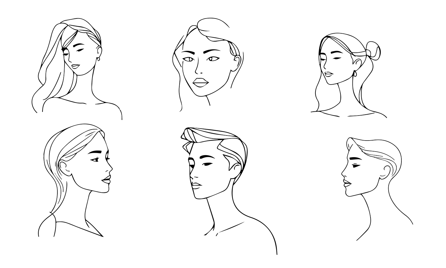 Set of stylized woman faces. Modern single line art. Woman beauty fashion concept. Vector Graphic