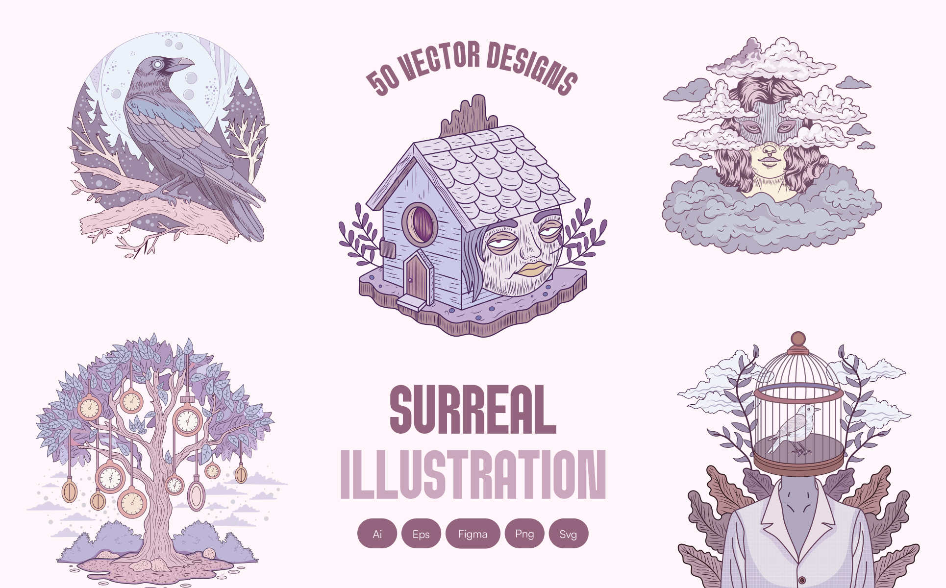 Step into the world of imagination with this Surreal Illustration Art Set. Filled with dreamlike landscapes, hybrid creatures, symbolic objects, and melting elements, this collection is designed for those who love creating artwork beyond reality. Perfect for posters, book covers, branding, social media, and digital collages. These surreal illustrations add an imaginative and thought-provoking touch to any creative project.